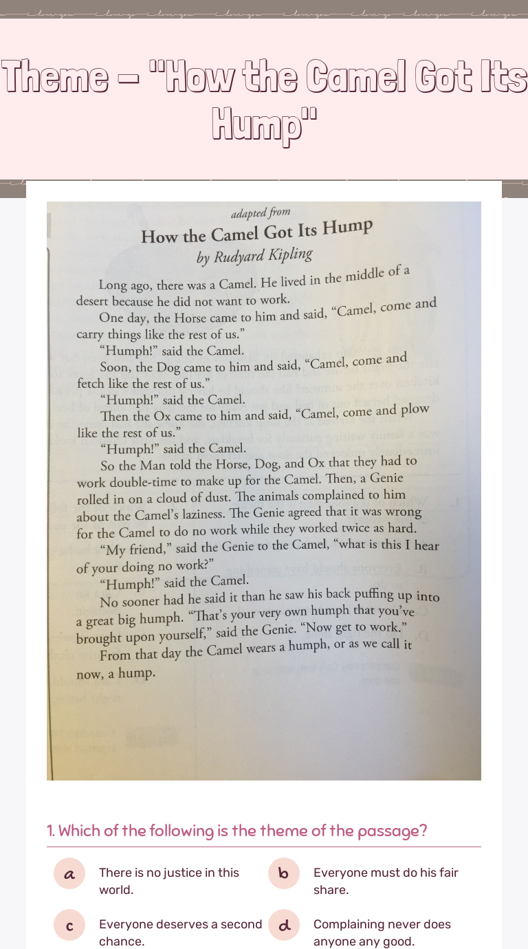 How The Camel Got His Hump Theme / In the story, rudyard kipling brings out the theme of laziness effectively.