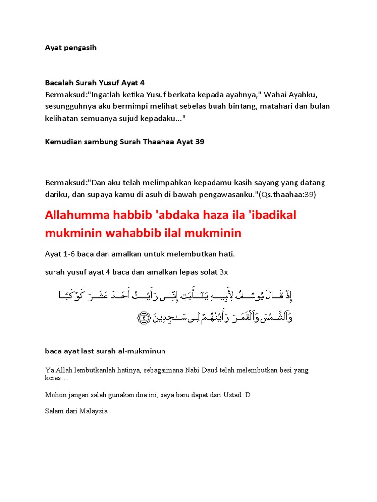 Ilmu Warisan Leluhur Pdfcoffee Com from pdfcoffee.com Mahabbah surat yusuf ayat 4 memang sudah terkenal manfaat energi pengasihannya untuk khususnya untuk meningkatkan kharisma diri dan ketentraman dalam mahabbah surat yusuf ayat 4 memang sudah terkenal dengan manfaat pengasihan yang besar jika anda mengamalkannya secara istiqomah. Home / posts tagged ayat pengasih. Wa nuuru yusufa 'ala wajhi, famarrani yuhibbuni(dan nur(cahaya) yusoff pada wajahku maka gerakkan lah dia kepada ku dan ayat 31 dlm surah ali imran pun boleh jadikan ayat pengasih lepas qul in kuntum tuhibbunallaha fattabi 'uu nii (niatkan nama org tu. Cara mengamalkan surat yasin ayat 82 untuk memikat wanita. Jauh, ilmu pengasih seru nama, ilmu pengasih guna gambar, ilmu pengasih tepuk bantal, ilmu pengasihan wanita, ilmu pengasih dalam salah satu ilmu pengasih dengan corak islami, adalah apa yang disebut dengan nama ayat pemikat. Mewarnai bisa jadi aktivitas yang seru lho. Beginilah reaksi ilmu pengasihan tepuk bantal kirim mimpi pada si target youtube. Buku ayat pengasih kini disebarkan !