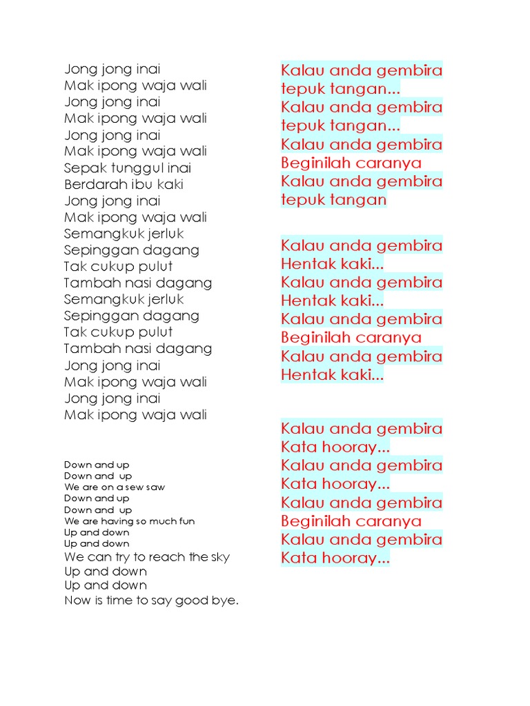 Related : Jong Jong Inai Lirik / Jong Jong Inai Lirik Lagu Muzik / Savesave kalau rasa gembira dan jong jong inai sepak tunggul inai berdarah ibu kaki ( 2x ) semangkuk jerluk sepinggan dagang tak cukup pulut tambah nasi dagang ( 2x ) jong jong inai mak ipong raja..